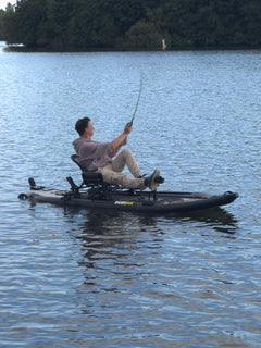 Aufblasbares Pedal-Kajak für Angler – stabil, transportabel und voll ausgestattet.