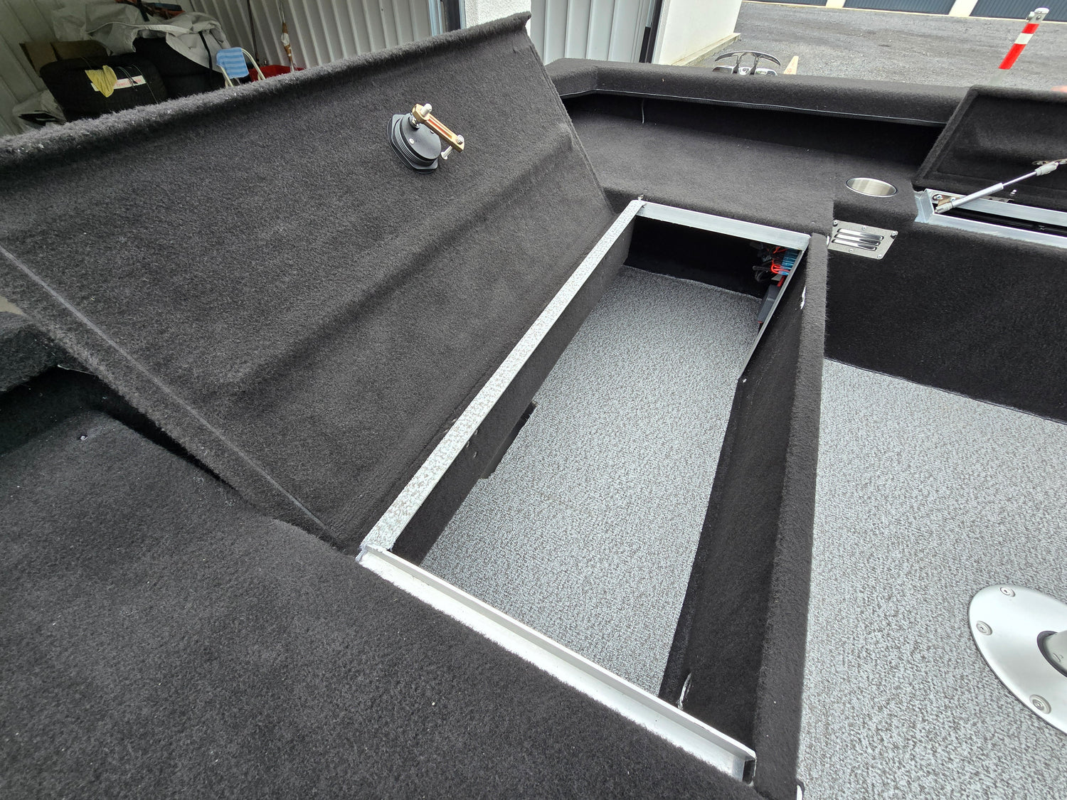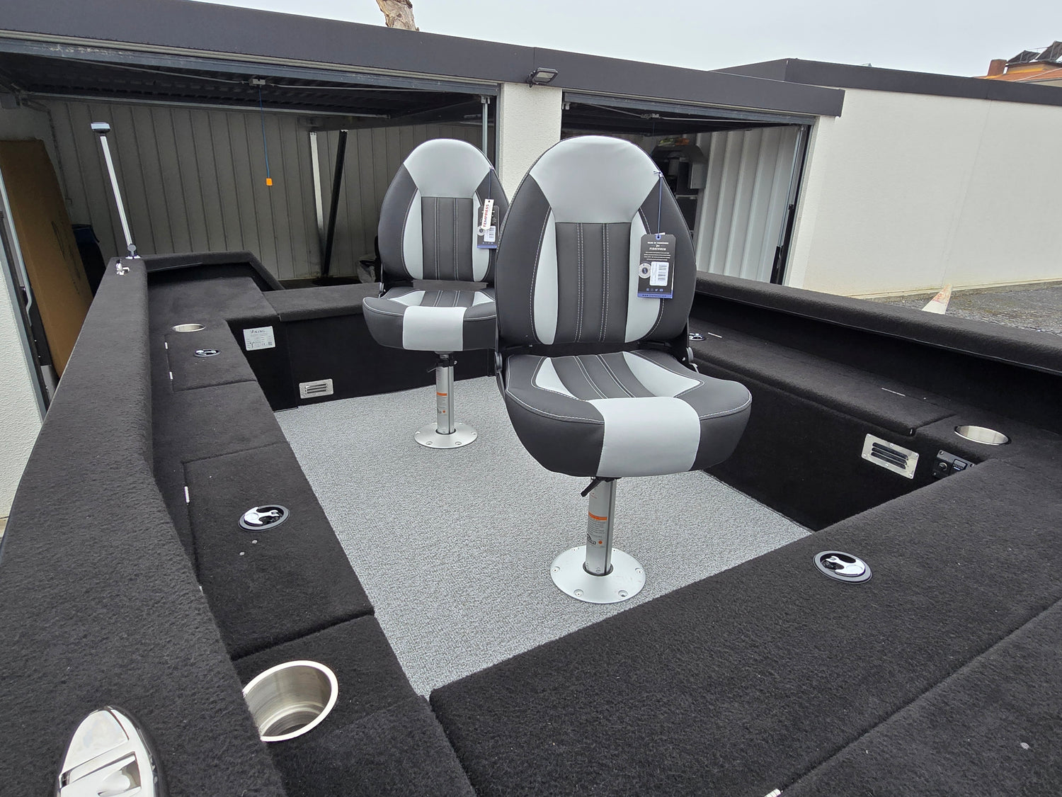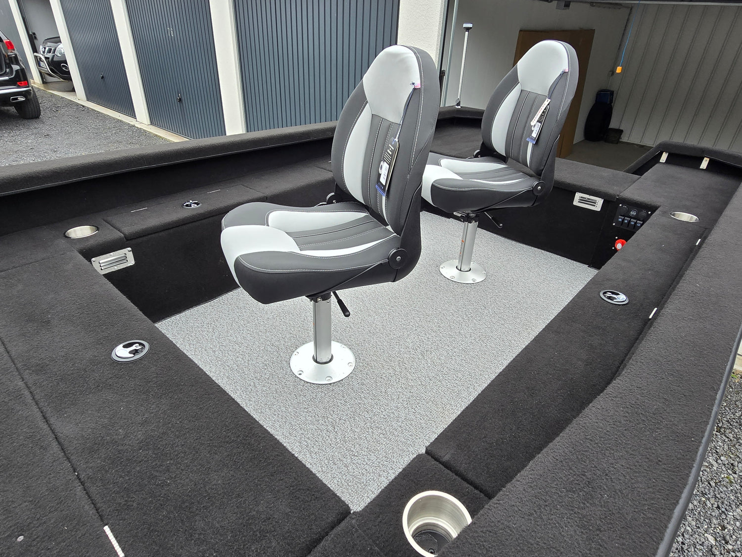 - kompletter schwarzer Marinebelag im Bootsinneren